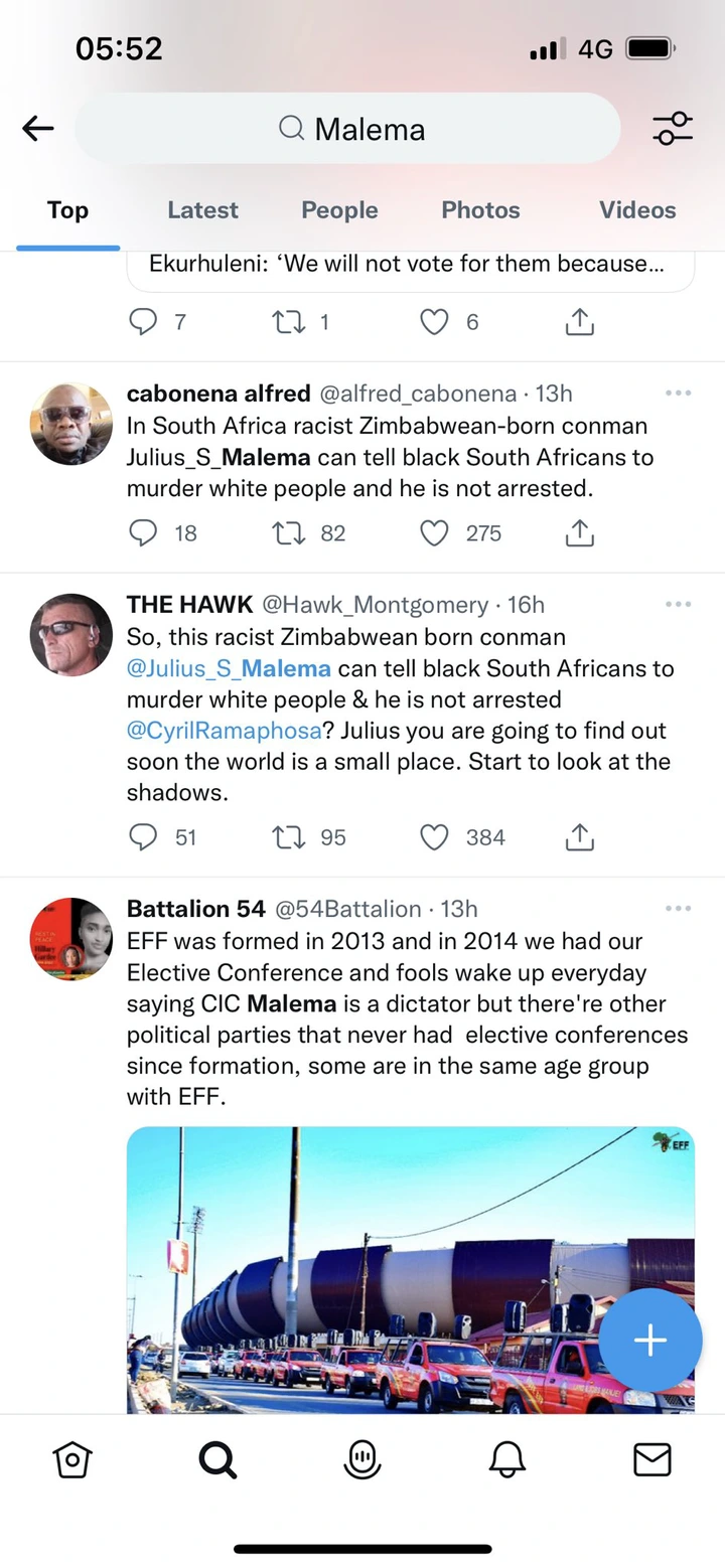 The Hawk said that “So, this racist Zimbabwean-born conman Julius Sello Malema can tell black South Africans to murder white people & he is not arrested Cyril Ramaphosa? Julius you are going to find out soon the world is a small place. Start to look at the shadows.”