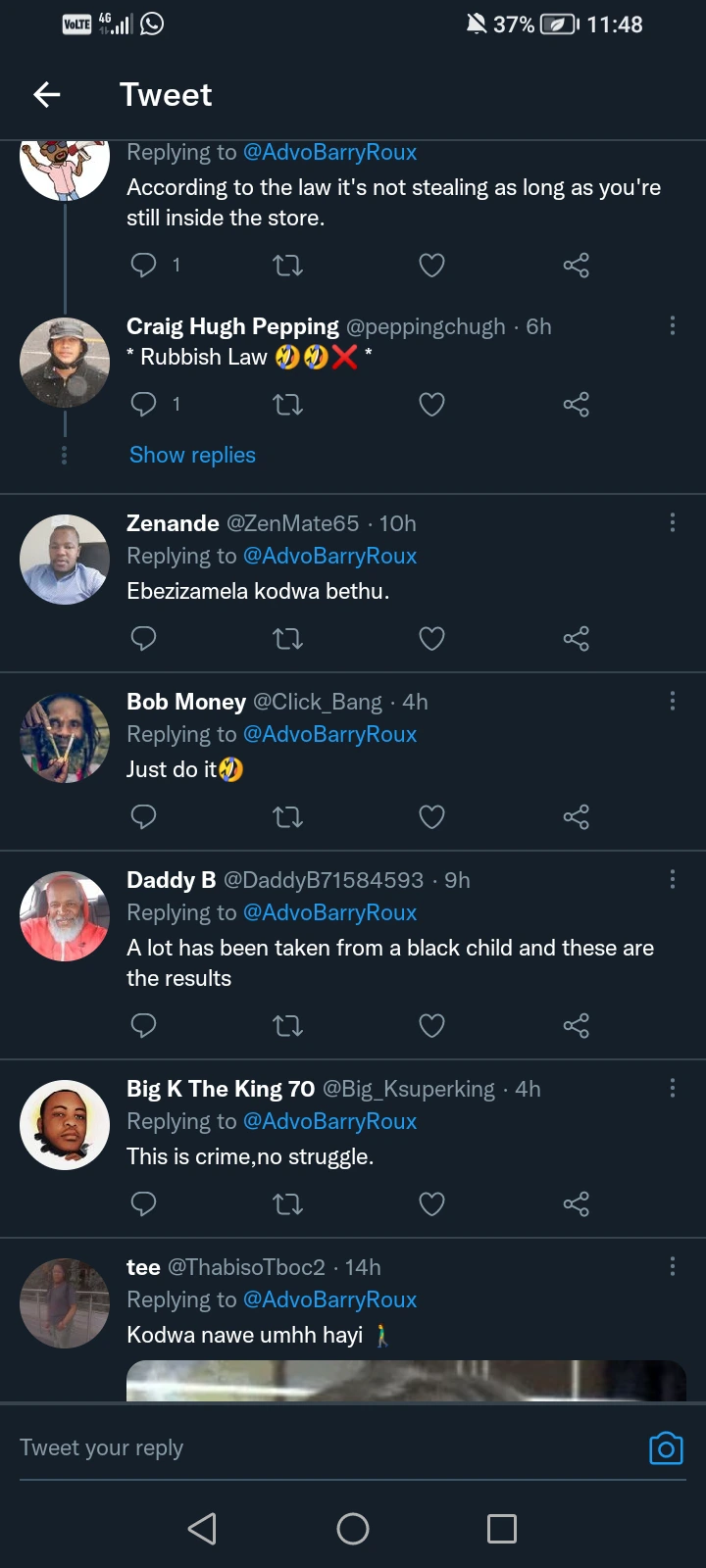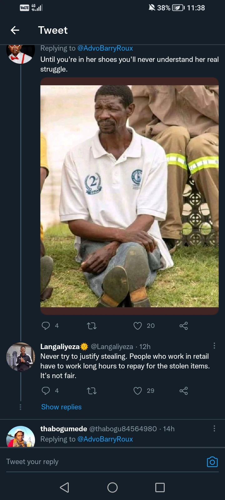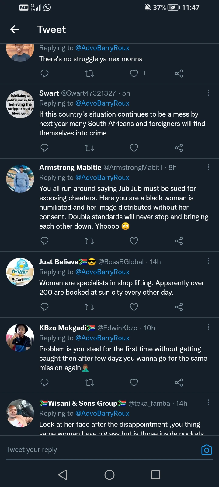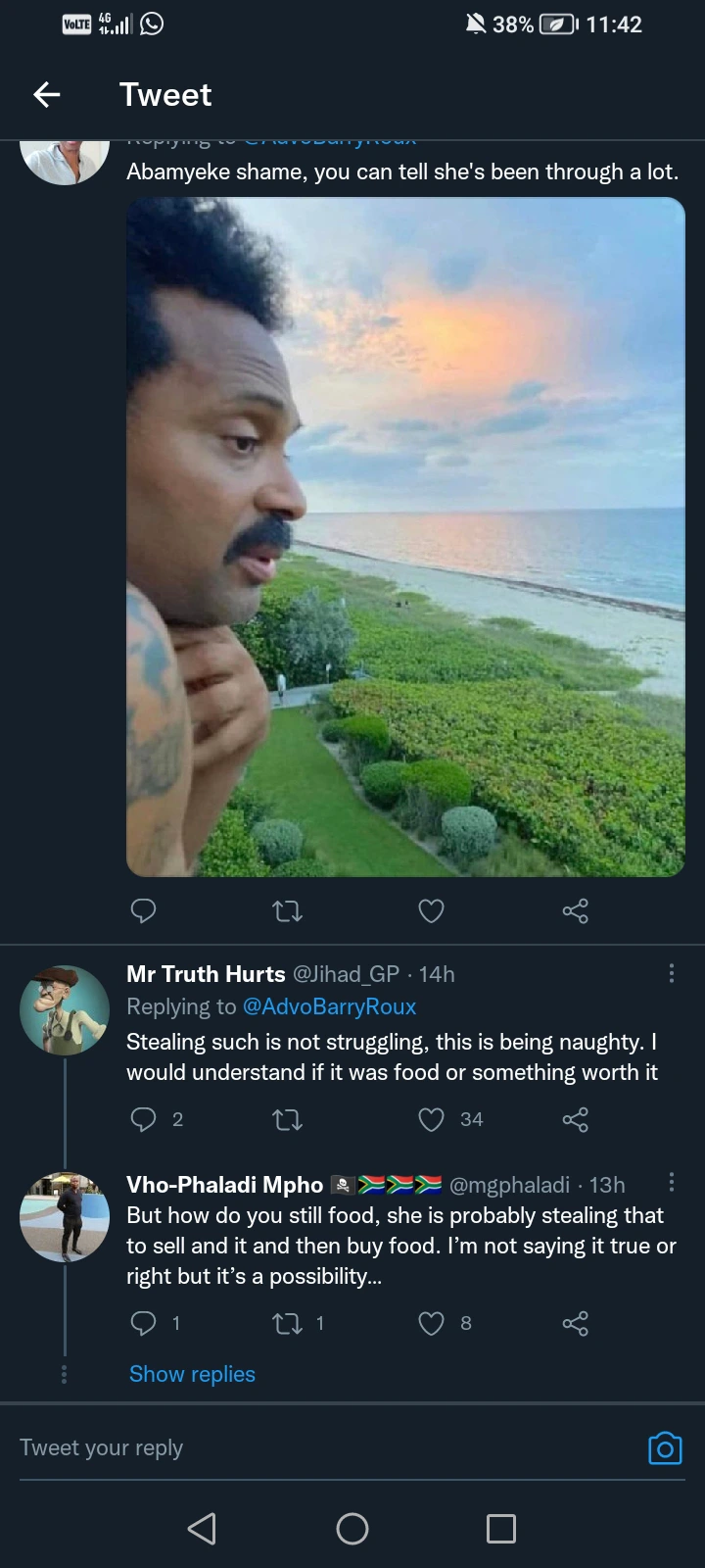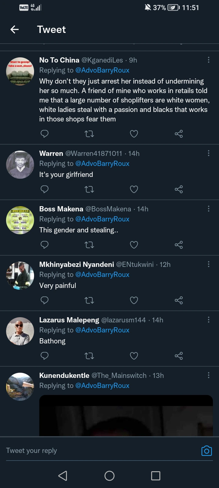 A young man with the user name of Advo Barry Roux shared pictures of a young lady who was caught shoplifting.