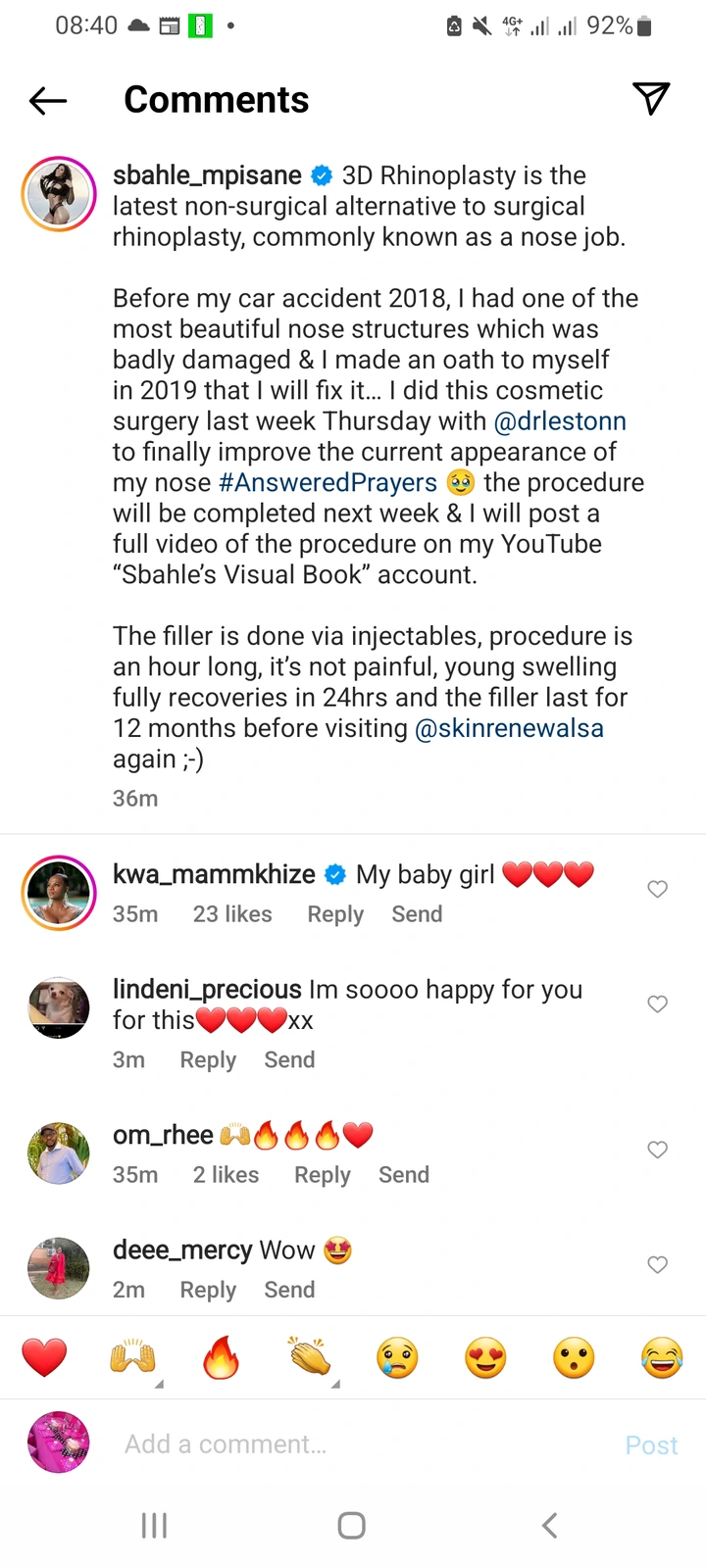 What are your thoughts about Sbahle recent nose job ,it looks beautiful isn’t it? Kindly like,share and comment.