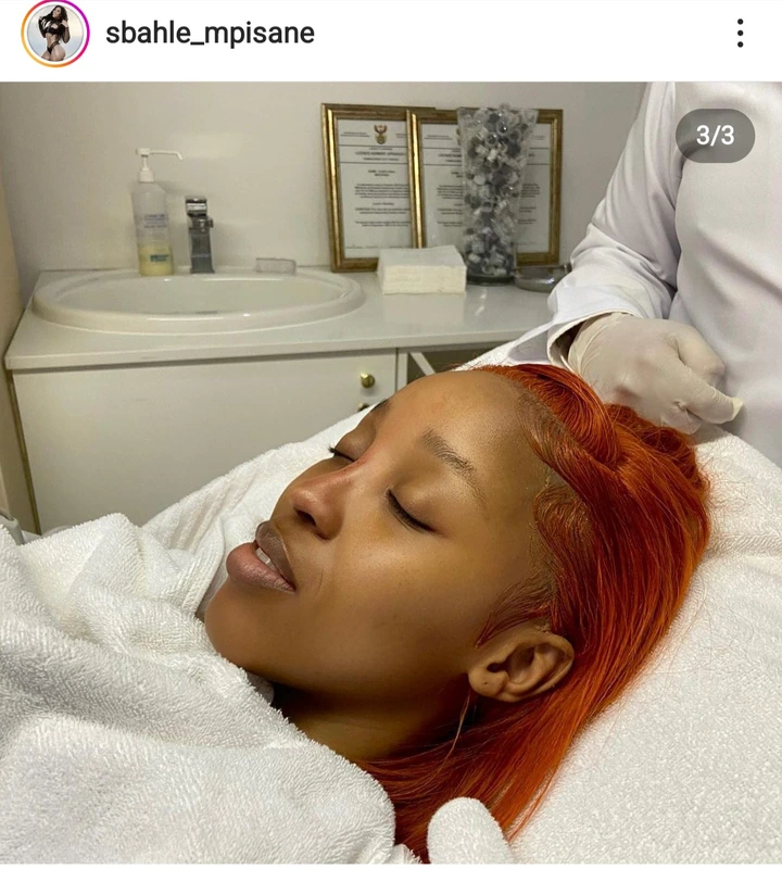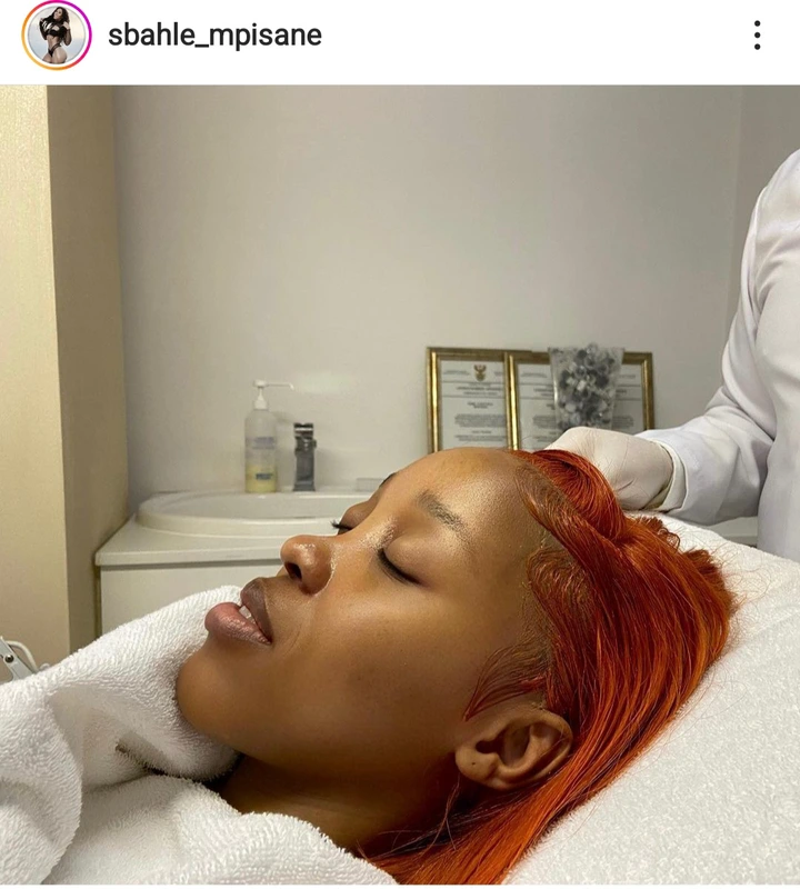 Sbahle Mpisane is also the stepdaughter of the famous businesswoman Shauwn Mkhize. Some few years back she got into a car accident that left her with some scars.The famous fitness guru is determined to fix what is broken.On her recent post she posted pictures of her non surgical nose job.On the pictures she was with a Dr sleeping on a bed showing her nose.The pictures were posted with the following caption