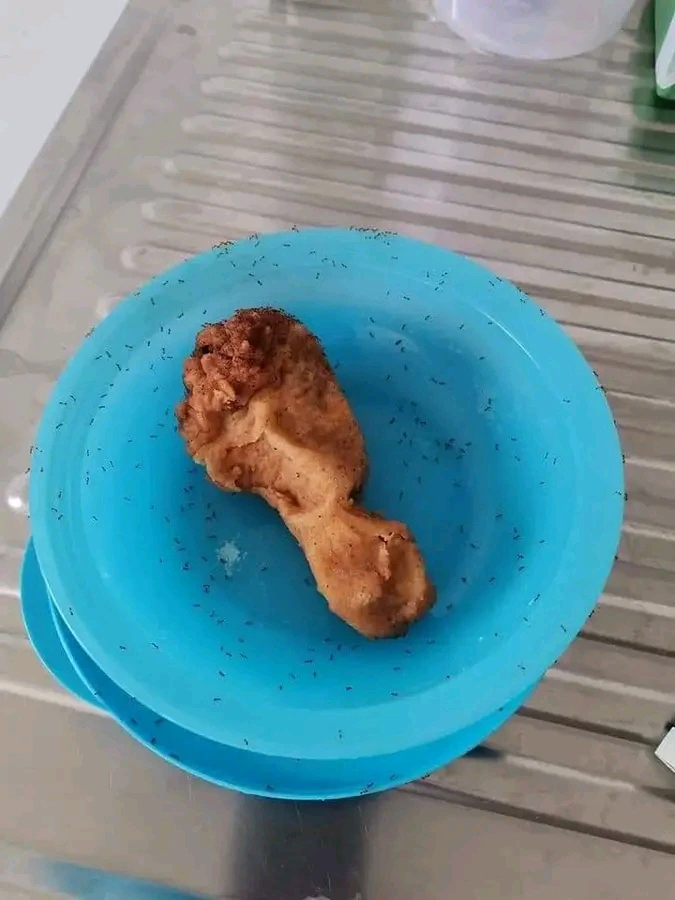 One social media user shared a picture of a plate with a drumstick full of ants. It looks like they left their meat unattended and the ants showed up.